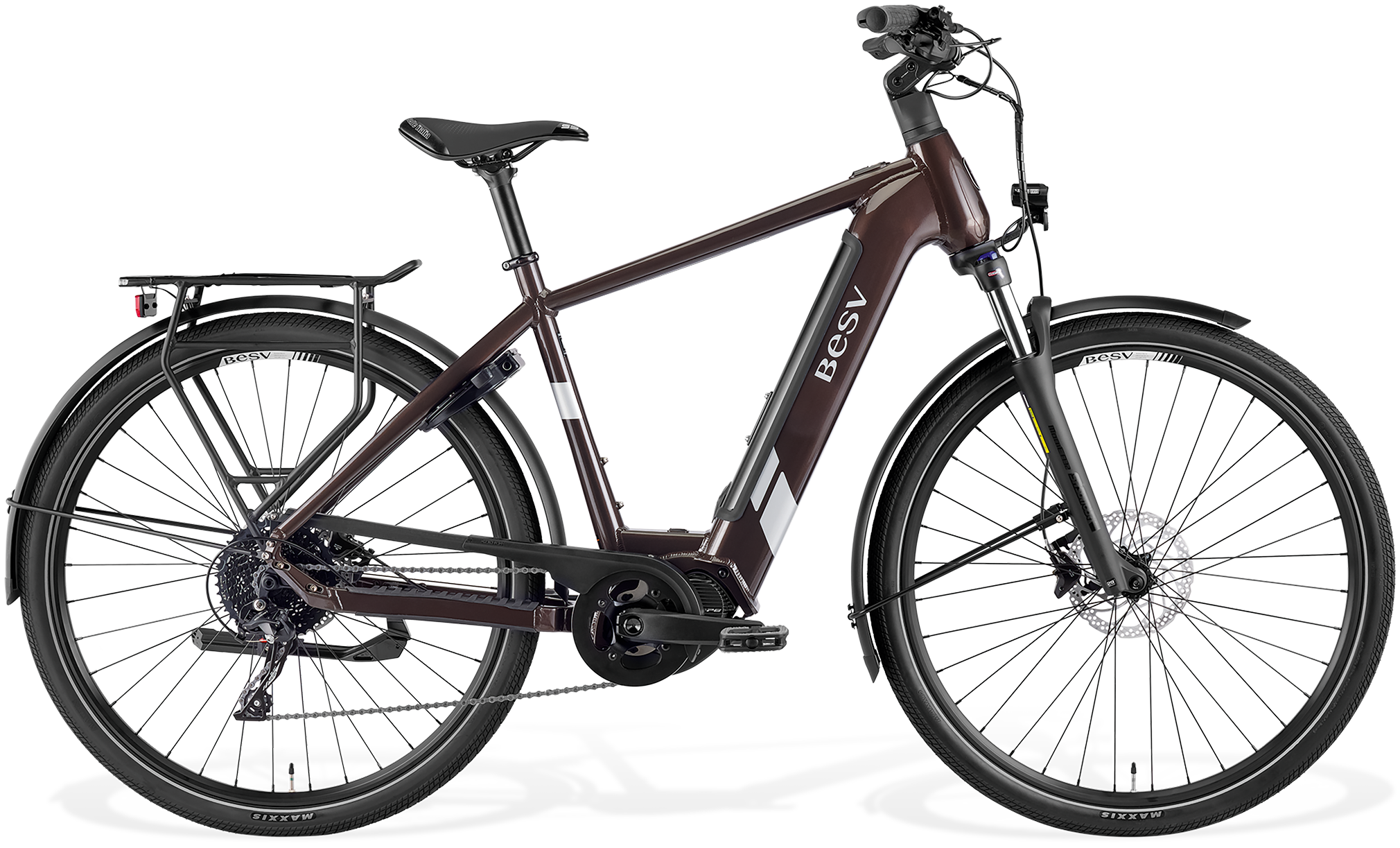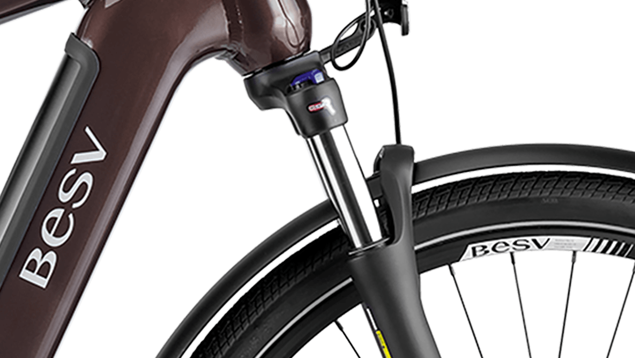 FRAMESET | FRAMEBESV TR 1.Series alloy frame, SHIMANO E-BIKE SYSTEMS and internal battery compatible COLOR(S)Metallic umbra SIZESS (47cm), M (52cm), L (56cm) FORKSR Suntour Mobie A32, Lockout, Coil damping, tapered alloy steerer, 75mm travel, Thru-axle REAR CARRIERTubular aluminium carrier, with Snap-IT platform and spring clamp FENDERSAlloy extruded fenders, stainless steel hardware |