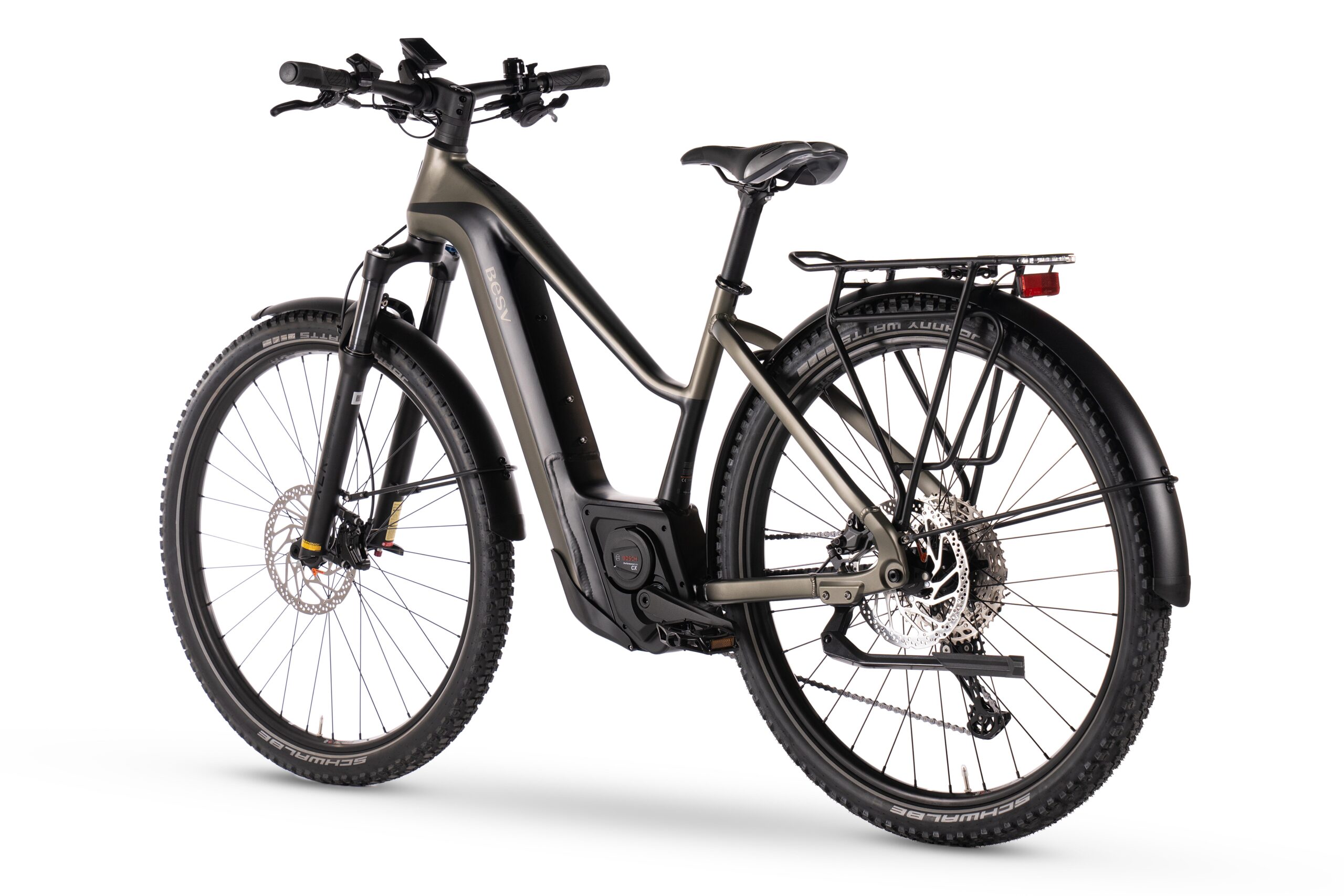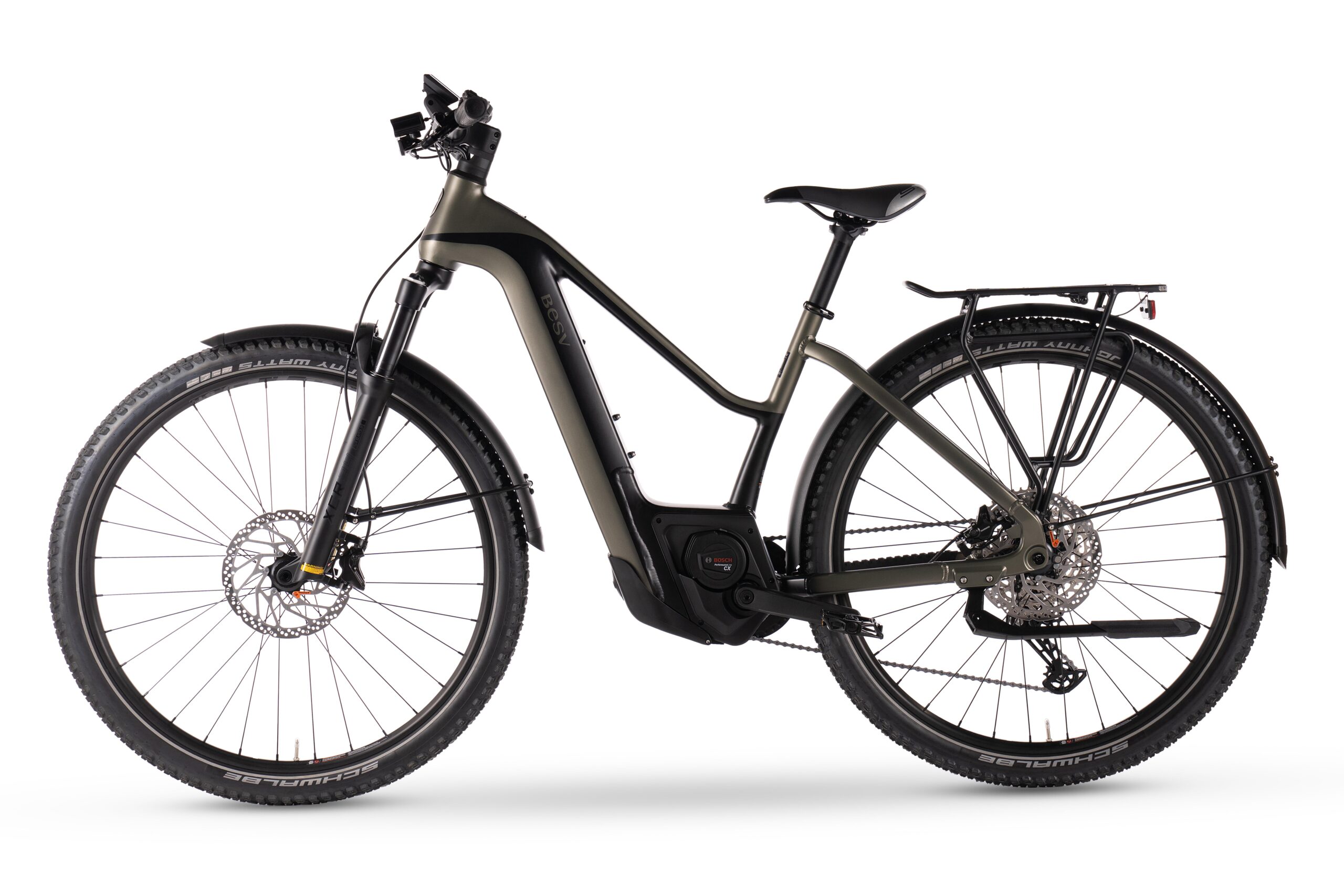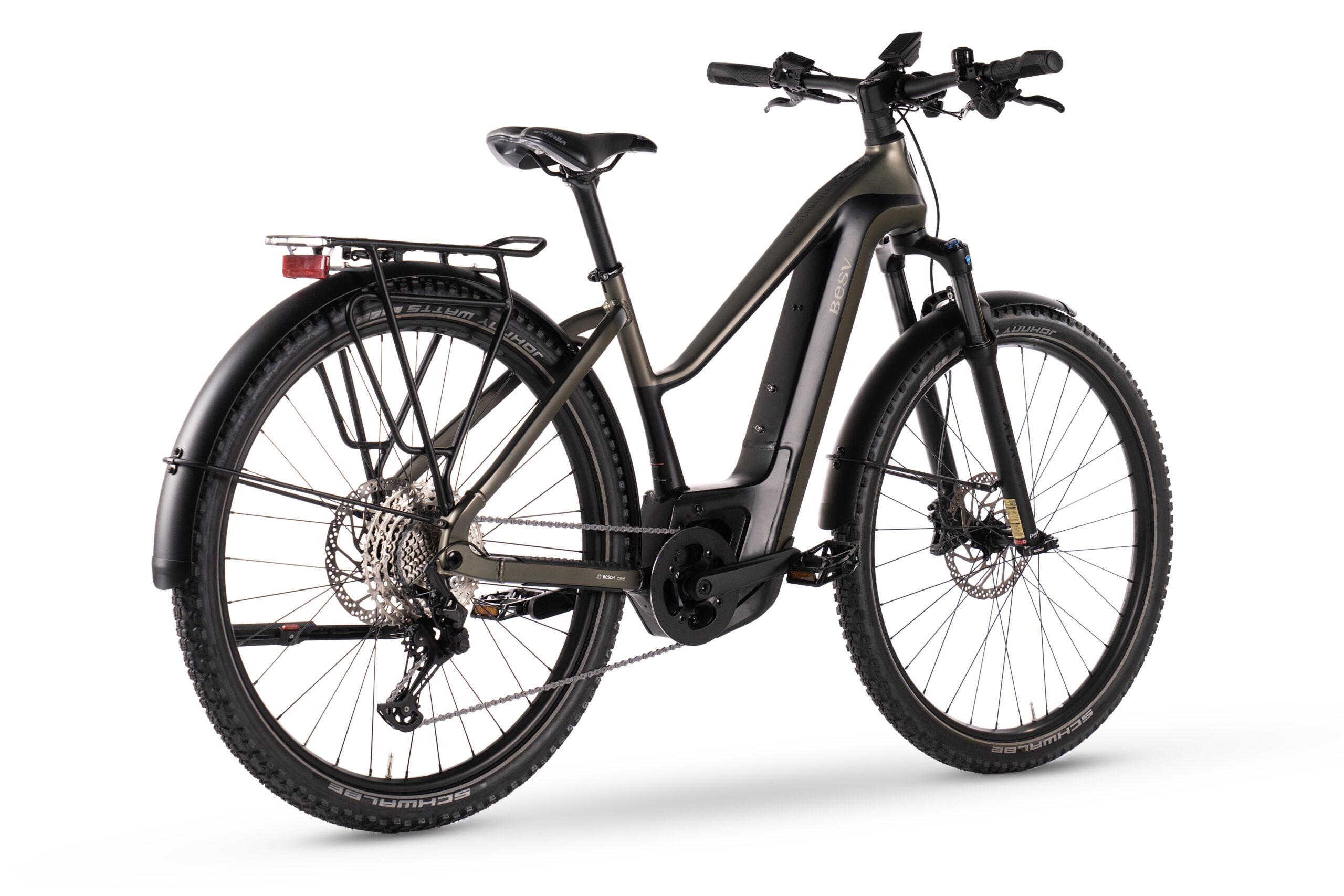 FRAMESET | FRAMEHard-tail BESV TRX-B Series smooth welded alloy frame, Bosch motor and internal battery compatible COLOR(S)Metallic khaki with black satin SIZESS (42.5cm), M (46cm), L (49cm) FORKSR Suntour XCR34, 34mm stanchions, Lockout, Air damping, 1 1/8"-1.5" tapered alloy steerer, travel 100mm REAR CARRIERTubular aluminium carrier, with MIK-HD platform and spring clamp, H-Cargo rear light mount FENDERSAlloy extruded fenders, front & rear 3/4 length, stainless steel hardware |