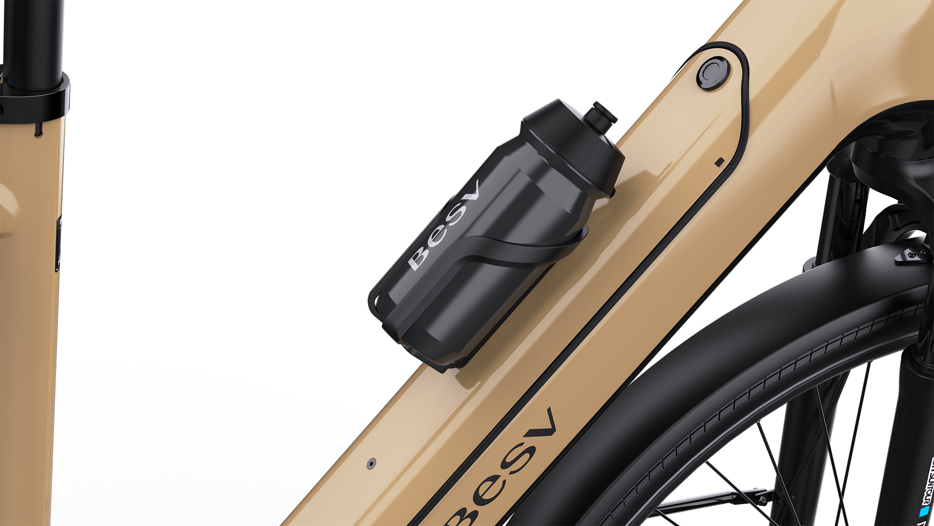 FRAMESET | FRAMEBESV CT-B 1.Series, smooth welded alloy frame, Bosch eBike system compatible, Gen.5 motor mount COLOR(S)Metallic brass with black gloss SIZESS (47cm), M (52cm), L (56cm) FORKSR Suntour NVX32, Lockout, Coil damping, tapered alloy steerer, 63mm travel, Thru-axle REAR CARRIERStandwell, with MIK HD platform and spring clamp FENDERSSKS PET A65R fenders |