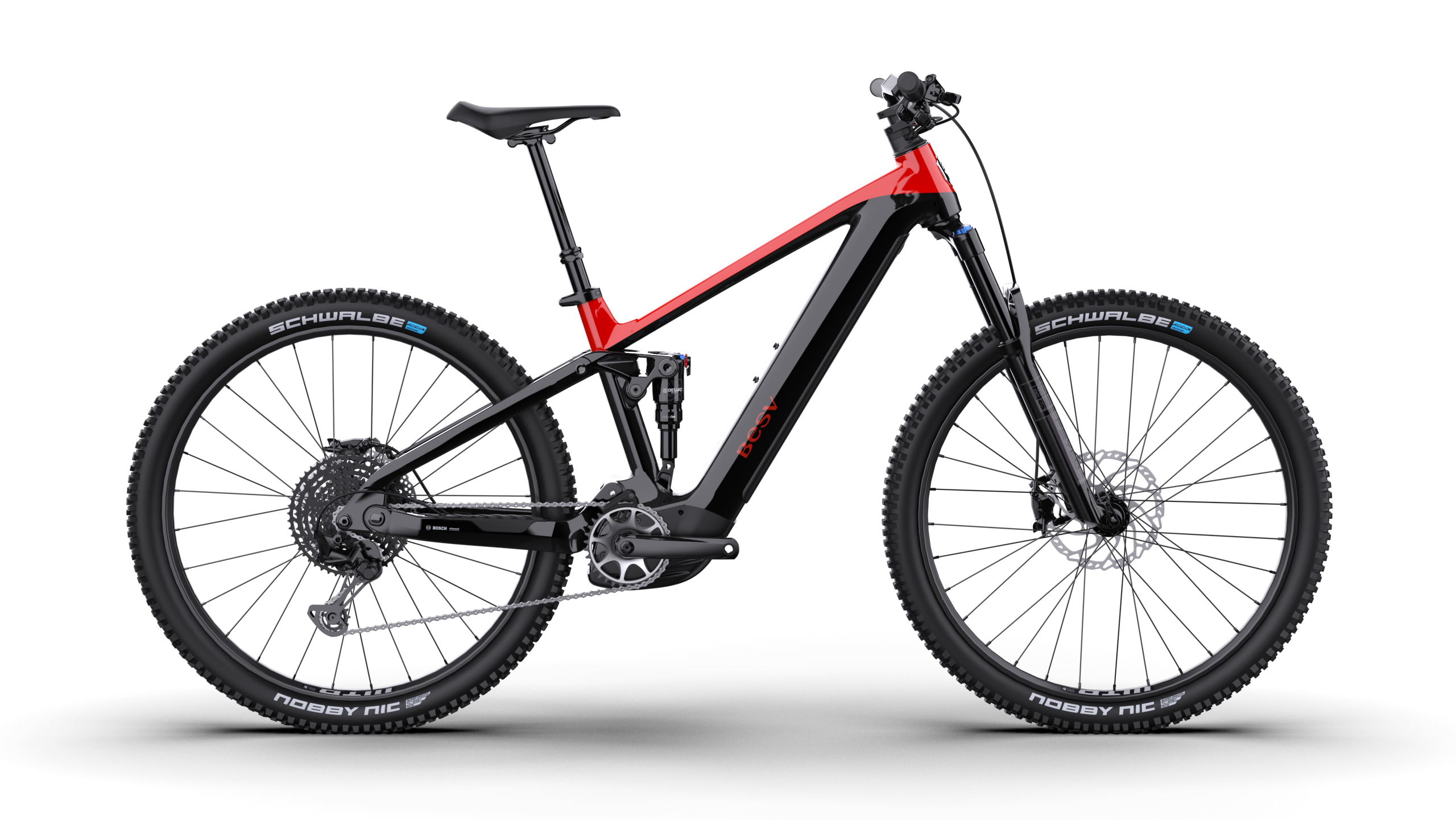 FRAMESET | FRAMEBESV TRS-B 140 Series alloy frame, smooth welded, Bosch eBike system compatible, Gen.5 motor mount COLOR(S)Intense red with black gloss SIZESS (41.5cm), M (43cm), L (46cm) FORKRock Shox Psylo Silver RC, 35mm stanchions, Solo Air, 1.1/8"-1.8" tapered alloy steerer, 140mm travel, Maxle Light Rear ShockRock Shox Deluxe Select C2, DebonAir, 165x45, 130mm rear wheel travel |