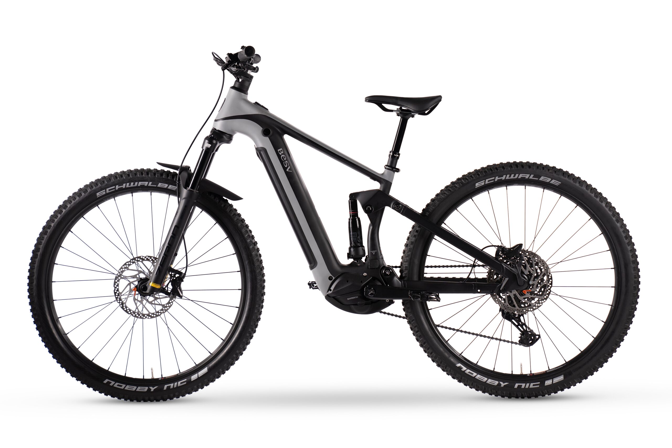 FRAMESET | FRAMEFull-suspension BESV TRS Series smooth welded alloy frame, SHIMANO E-BIKE SYSTEMS and internal battery compatible COLOR(S)Slate gray with black satin SIZESS (40cm), M (42.5cm), L (44.5cm), XL (46cm) FORKSR Suntour Zeron35, 35mm stanchions, Lockout, Air damping, 1 1/8"-1.8" tapered alloy steerer, travel 130mm Rear ShockRock Shox Deluxe Select R, 210x55, Debon Air, 130mm rear wheel travel |